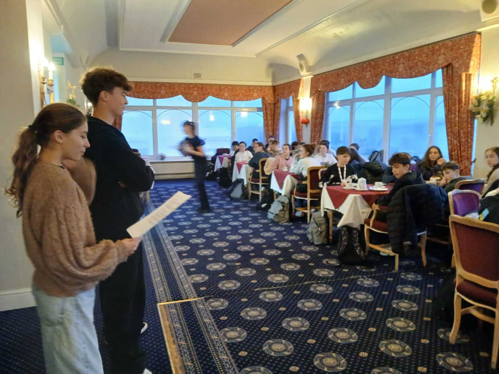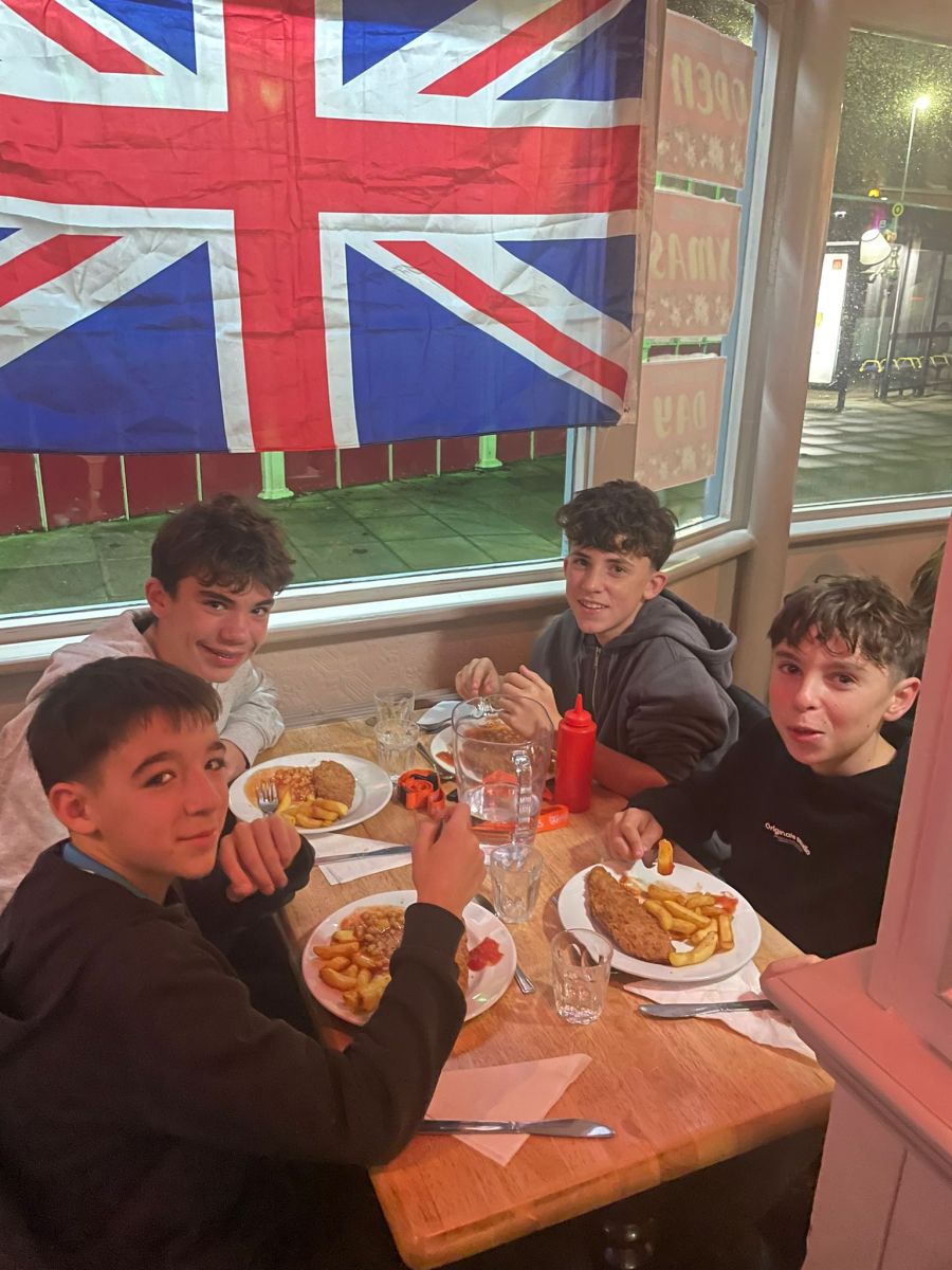 Une deuxiĂšme journĂ©e anglaise avec une mĂ©tĂ©o pas anglaise du tout ! En effet, un grand soleil a Ă©tĂ© prĂ©sent toute la journĂ©e pour notre plus grand bonheur. Pour commencer, nous nous sommes retrouvĂ©s au bus vers 8h ce matin. Chacun a racontĂ© sa premiĂšre soirĂ©e dans sa famille anglaise. Des points communs sur la nourriture notamment : ils ont presque tous mangĂ©s des pizzas, des frites ou des pĂątes. De quoi bien remplir les estomacs et passer une bonne nuit. Ils se sont globalement tous bien reposĂ©s. Les Ă©lĂšves ont Ă©tĂ© divisĂ© en deux groupes pour les activitĂ©s de la journĂ©e. Rallye photos dans la ville dâHastings et temps shopping, dĂ©gustation dâun Cream Tea (avec lâauriculaire levĂ© bien Ă©videmment) et cours dâanglais. Au Cambridge Gardens College, les Ă©lĂšves ont apprĂ©ciĂ© les diffĂ©rents cours ainsi que les temps de pause. En effet, un piano, une guitare, un billard, ⊠étaient Ă leur disposition. Nous nous sommes tous retrouvĂ©s en fin de journĂ©e pour aller au supermarchĂ© et partir Ă la recherche de produits alimentaires traditionnels.