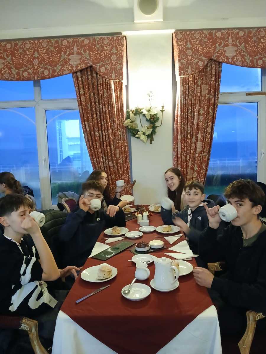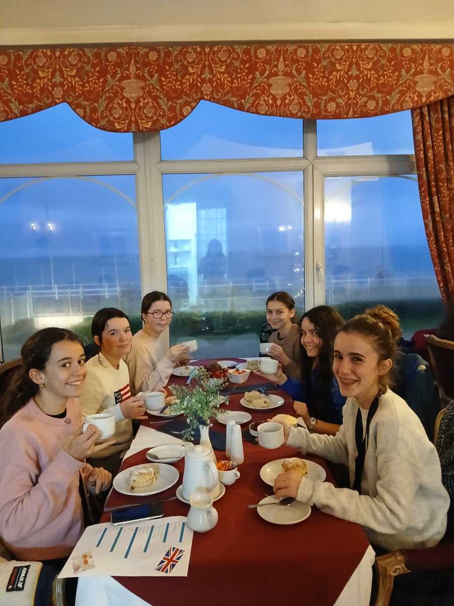 Une deuxiĂšme journĂ©e anglaise avec une mĂ©tĂ©o pas anglaise du tout ! En effet, un grand soleil a Ă©tĂ© prĂ©sent toute la journĂ©e pour notre plus grand bonheur. Pour commencer, nous nous sommes retrouvĂ©s au bus vers 8h ce matin. Chacun a racontĂ© sa premiĂšre soirĂ©e dans sa famille anglaise. Des points communs sur la nourriture notamment : ils ont presque tous mangĂ©s des pizzas, des frites ou des pĂątes. De quoi bien remplir les estomacs et passer une bonne nuit. Ils se sont globalement tous bien reposĂ©s. Les Ă©lĂšves ont Ă©tĂ© divisĂ© en deux groupes pour les activitĂ©s de la journĂ©e. Rallye photos dans la ville dâHastings et temps shopping, dĂ©gustation dâun Cream Tea (avec lâauriculaire levĂ© bien Ă©videmment) et cours dâanglais. Au Cambridge Gardens College, les Ă©lĂšves ont apprĂ©ciĂ© les diffĂ©rents cours ainsi que les temps de pause. En effet, un piano, une guitare, un billard, ⊠étaient Ă leur disposition. Nous nous sommes tous retrouvĂ©s en fin de journĂ©e pour aller au supermarchĂ© et partir Ă la recherche de produits alimentaires traditionnels.