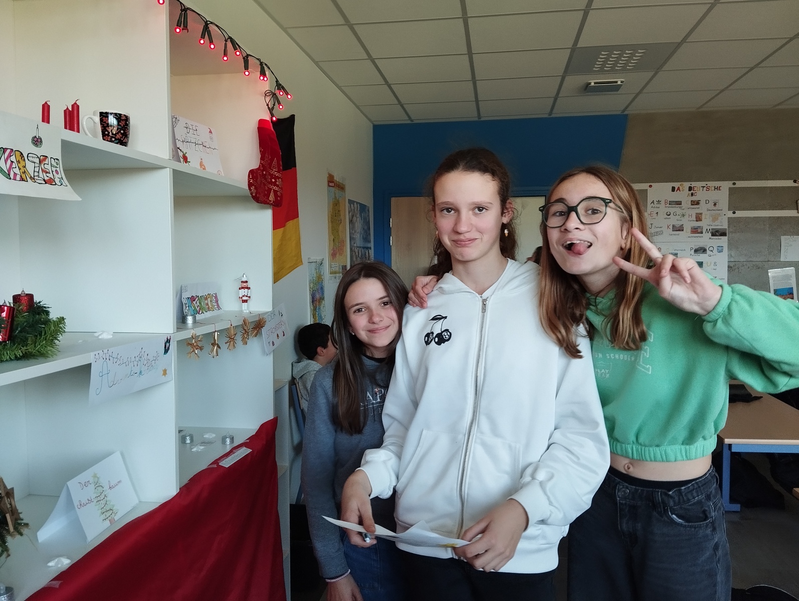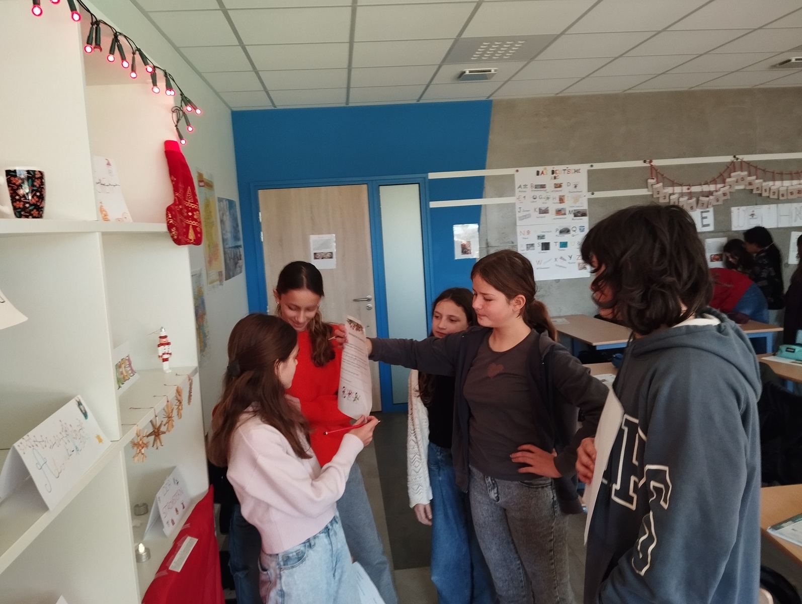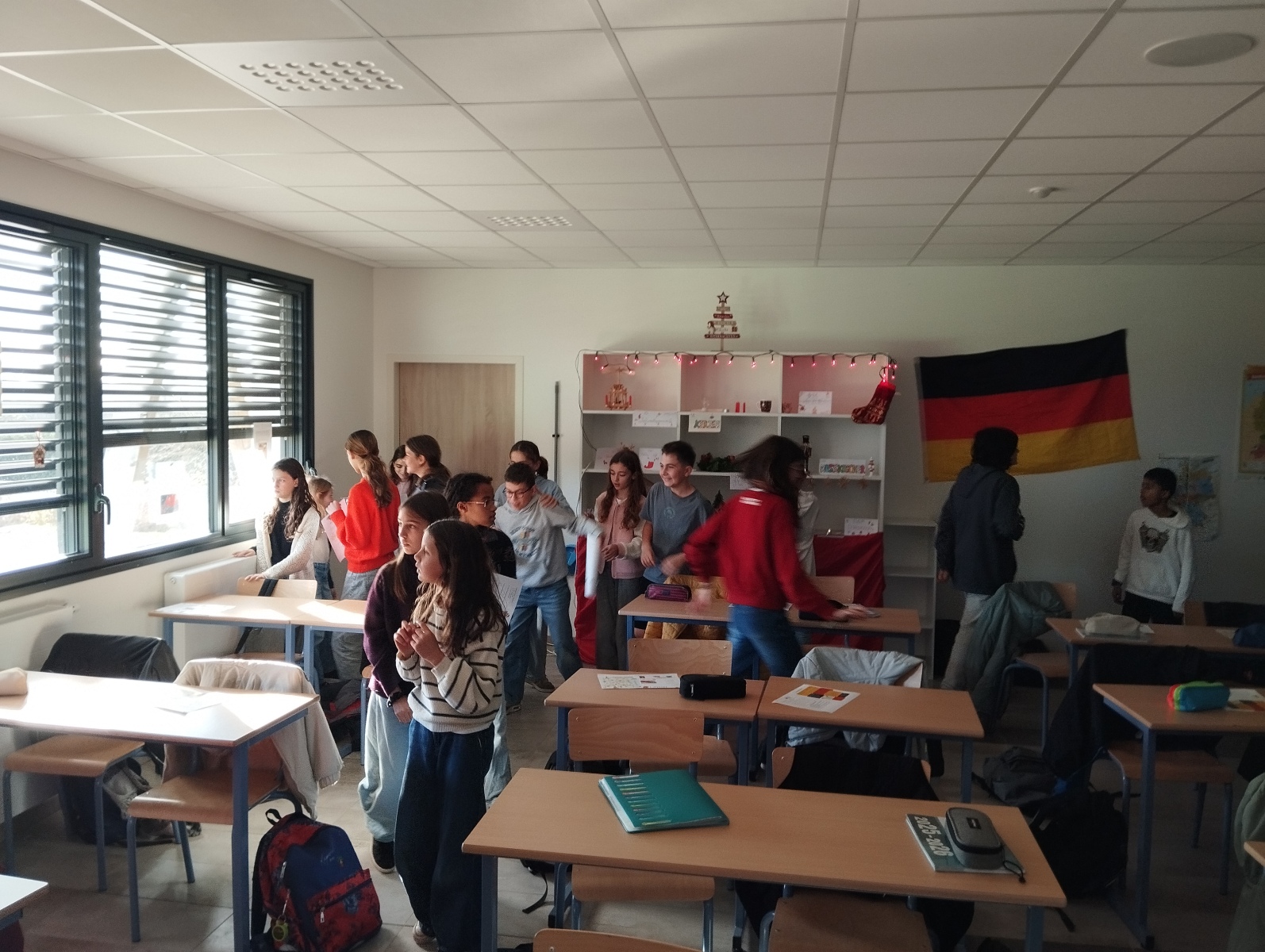 La séance s’est poursuivie par une activité autour d’une exposition de Noël en Allemagne, animée par les 5ᵉ : objets symboliques, affiches explicatives, quiz et memory, le tout accompagné de chants de Noël en allemand 🎶✨