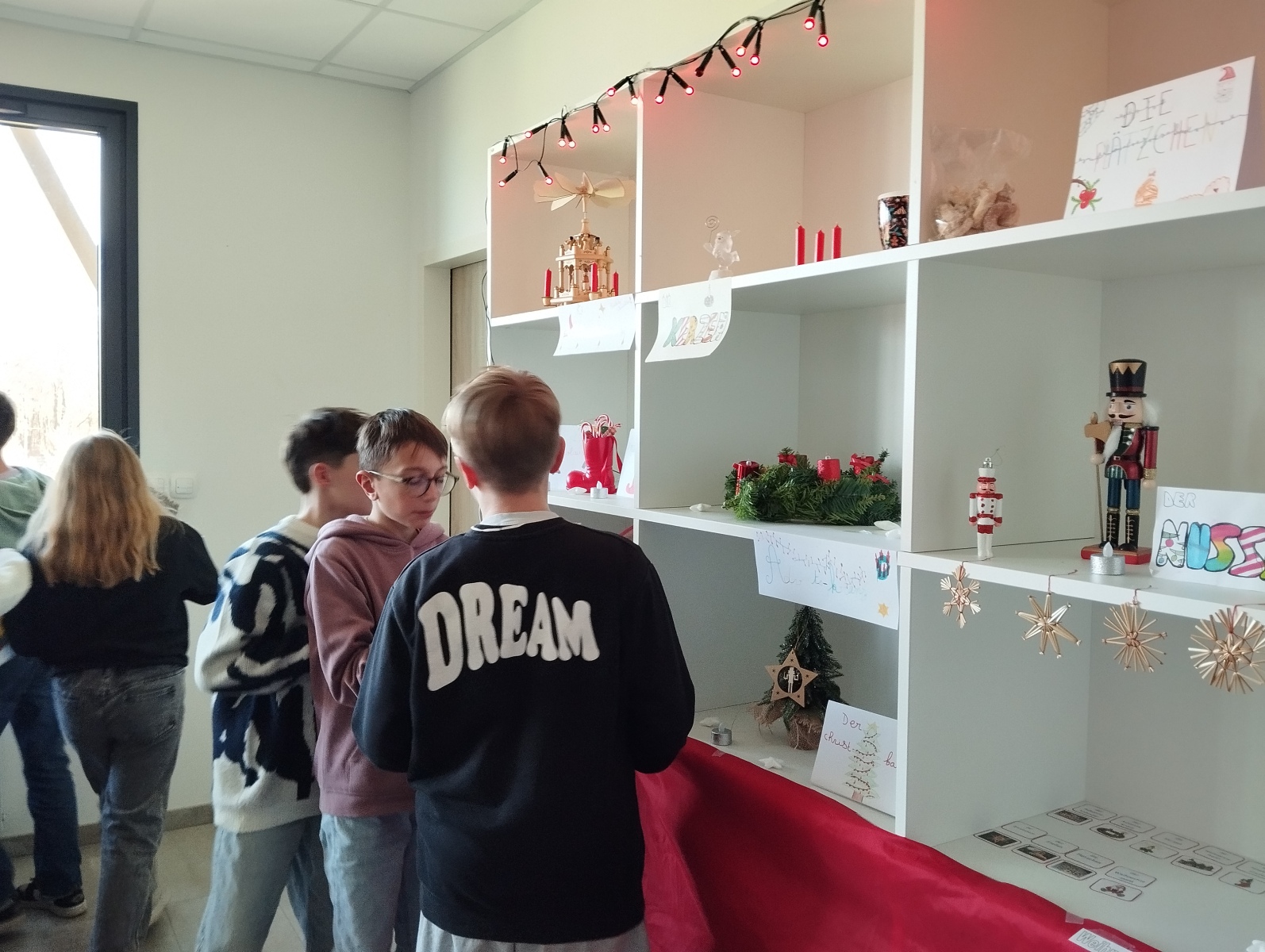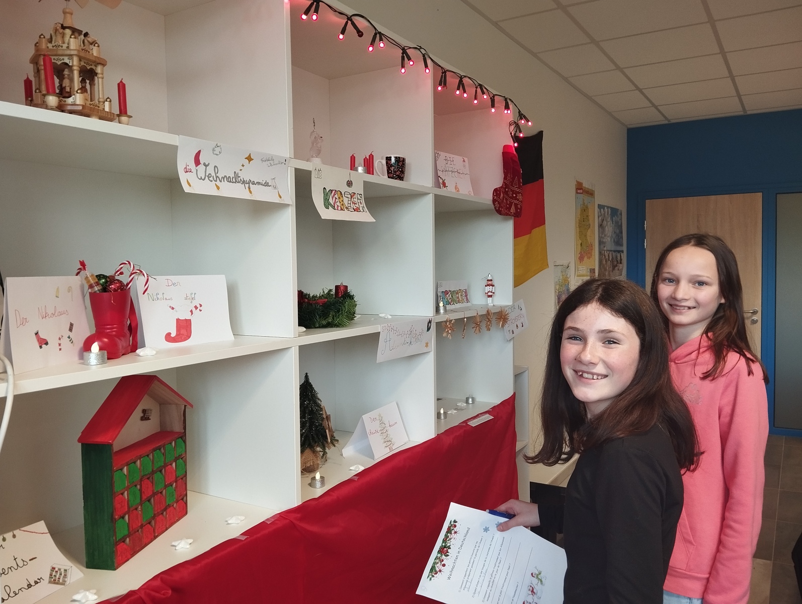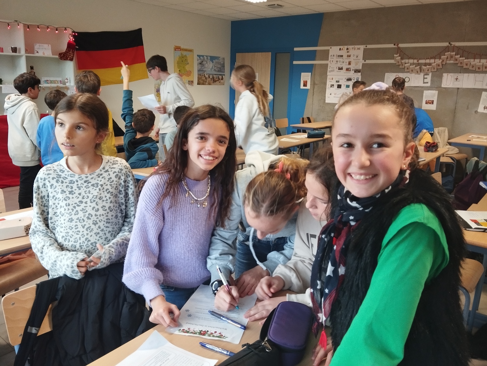 La séance s’est poursuivie par une activité autour d’une exposition de Noël en Allemagne, animée par les 5ᵉ : objets symboliques, affiches explicatives, quiz et memory, le tout accompagné de chants de Noël en allemand 🎶✨