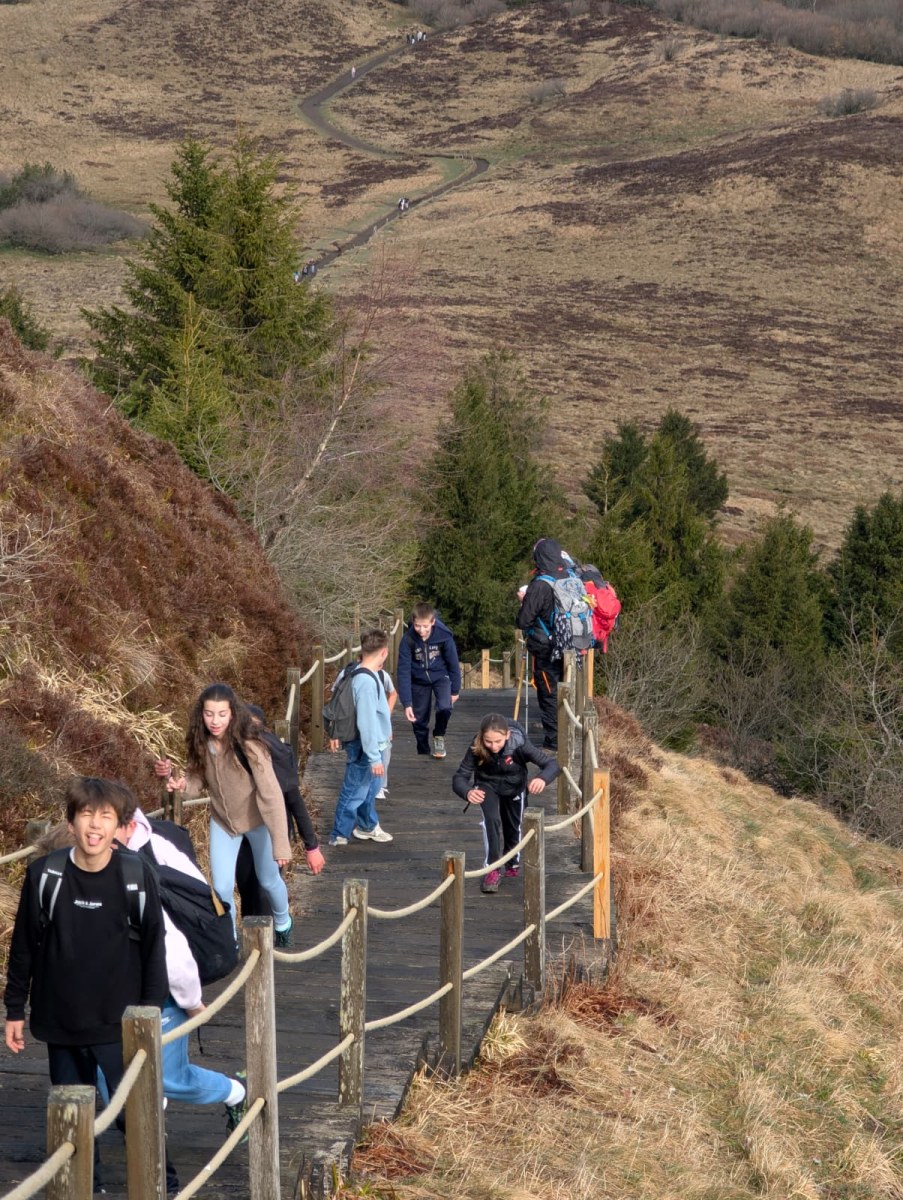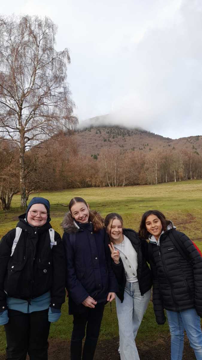 “Un long trajet sous la pluie, qui nous a amenĂ© au Puy de Vichatel, première randonnĂ©e de notre sĂ©jour. En 1h, les Ă©lèves avaient atteint les 1095m d’altitude. L’arrivĂ©e au centre a Ă©tĂ© apprĂ©ciĂ© pour se rĂ©chauffer.”